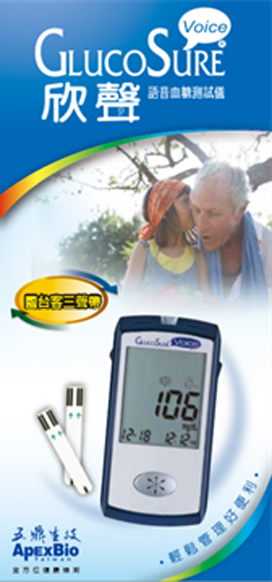 GlucoSure Voice 欣聲語音血糖測試儀 五鼎生技欣聲語音血糖測試儀提供 國、台、客語三種語言輔助功能, "大音量"加"大螢幕"的貼心人性化設計, 協助您每日清楚的監測血糖變化。