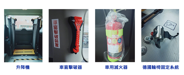 合法改裝無障礙設備,配有窗戶擊破器,滅火器。